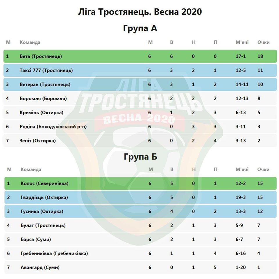 Результати перенесених матчів 6-го туру “Ліги Тростянець. Весна 2020”