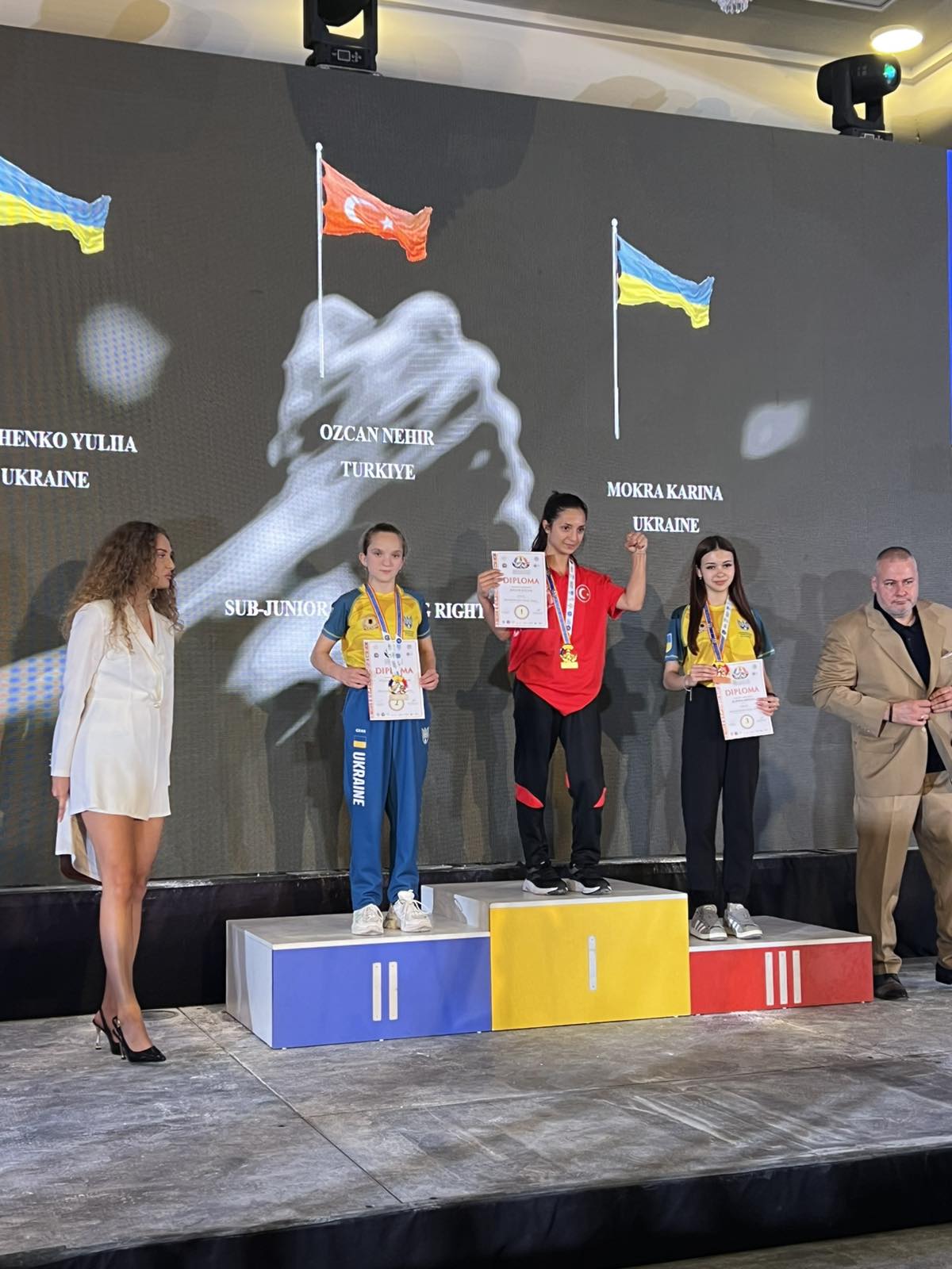 Сьогодні у віковій категорії до 15 років на праву руку у ваговій категорії 40 кг Юлія Стешенко з Липової Долини та у ваговій категорії до 45 кг Єва Дудченко (Липова Долина) посіли другі місця. У віці до 18 років на праву руку у ваговій категорії до 90 кг роменчанин Андрій Туй виборов «бронзу». Тренує спортсменів Євген Вакула.