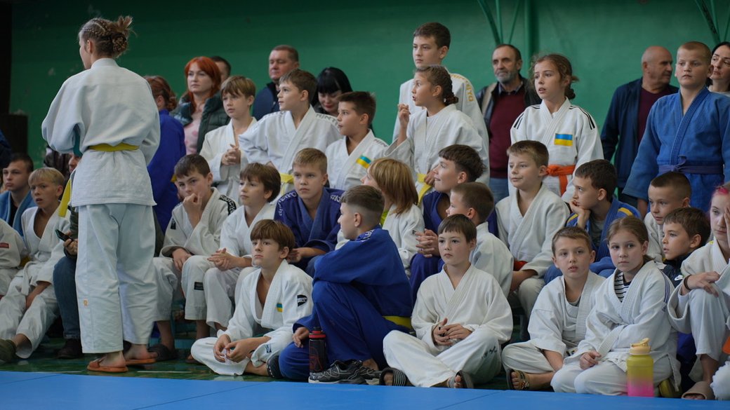 Першими на татамі вийшли юні дзюдоїсти.